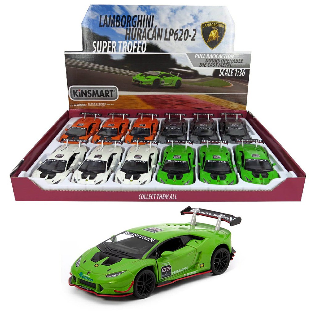 Carrinho Miniatura Lamborghini Huracán Lp620-2 Super Trofeo Kinsmart ORIGINAL Escala 1/36