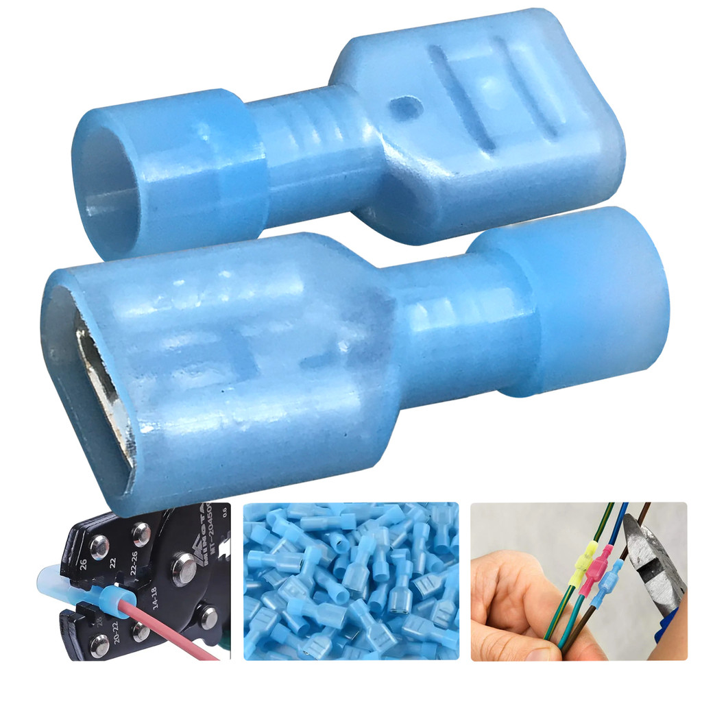 Kit 100 Terminal Fêmea Totalmente Isolado Faston 1.5 A 2.5mm Azul Conector Eletrico p/ Cabos e Fios