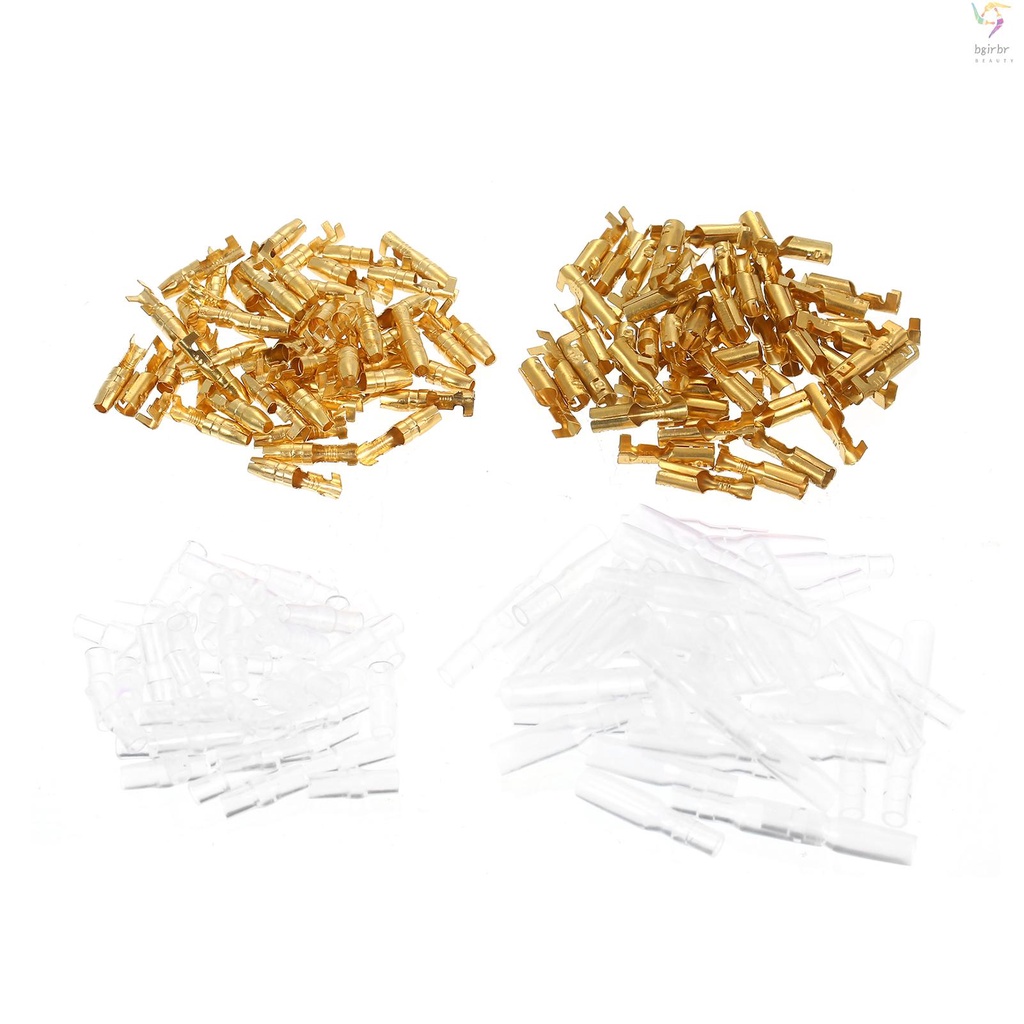 [BG] 200 Kit Terminal De Fio PCS Conjunto De Conectores De Bala Inclui Terminais Macho E Fêmea De 4,0 mm De Latão Mangas Isolantes Para Motocicleta De Carro # beautygirl