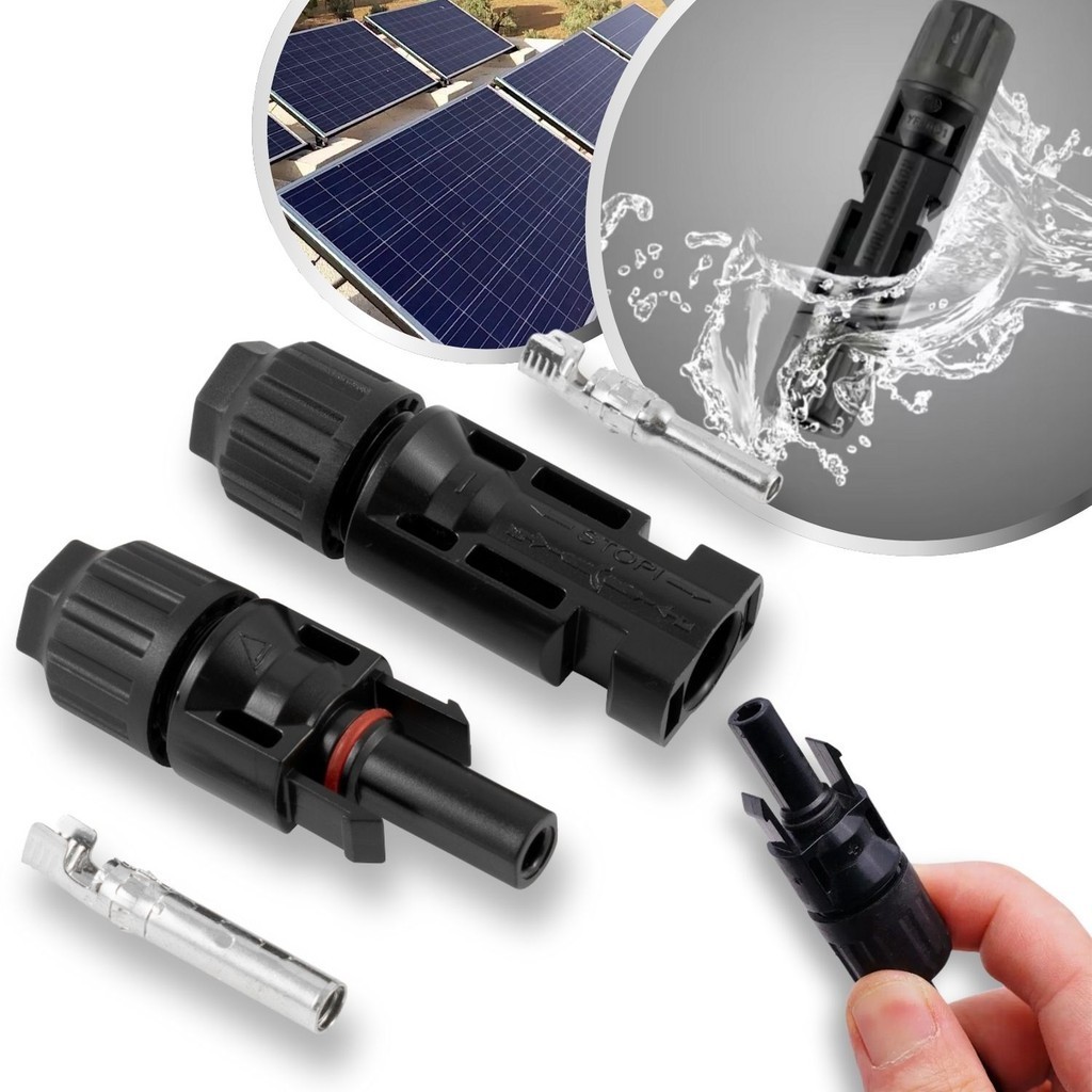 Kit 1 Par de Plug Terminal Conector MC4 Cabo Painel Energia Solar Placa Fotovoltaica Instalação de Módulo Inversor Macho e Fêmea