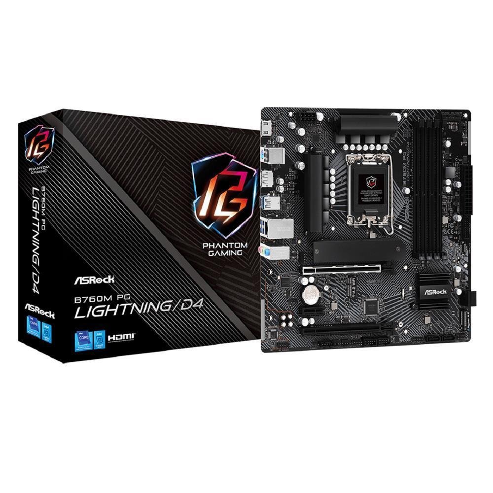 Placa Mãe Asrock B760m Pg Lightning/d4, Chipset B760, Intel LGA 1700, Matx, Ddr4