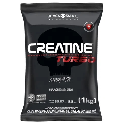 Creatina Turbo Black Skull 1kg - Creatine Monohidratada Turbo Caveira Preta - Refil