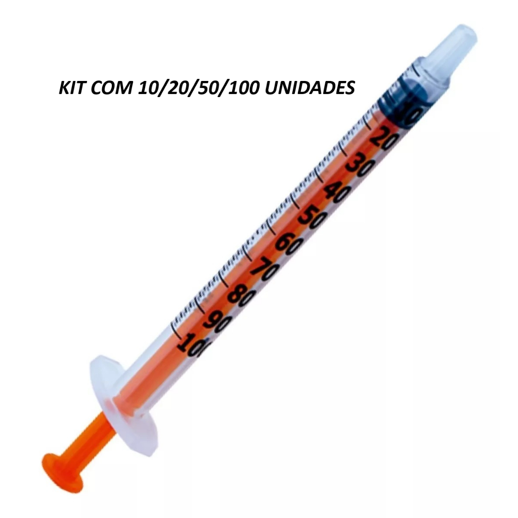 Seringas Insulina / Botox de 1ml 100UI Sem Agulha Luer Slip (Liso) - Kit com 10 / 20 / 50 / 100 Unidades