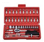 Kit Chaves Jogo Catraca Reversível Soquetes 46 Peças Maleta Portatil Aço Cromo Vanádio Reforçada - New