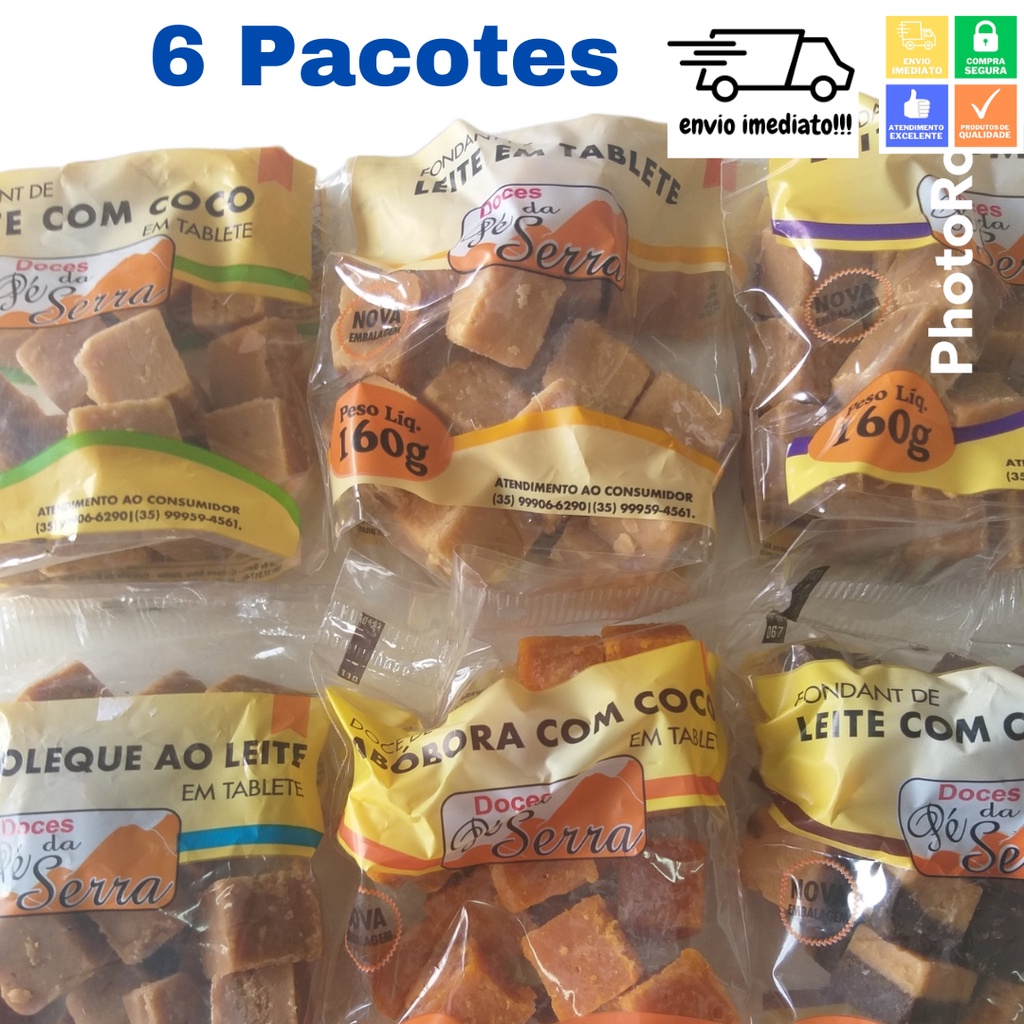 Doce de Leite Fondant Pedaço Com 6 Puro Chocolate Coco Ameixa Amendoim Abobora com Coco Pé da Serra 160g