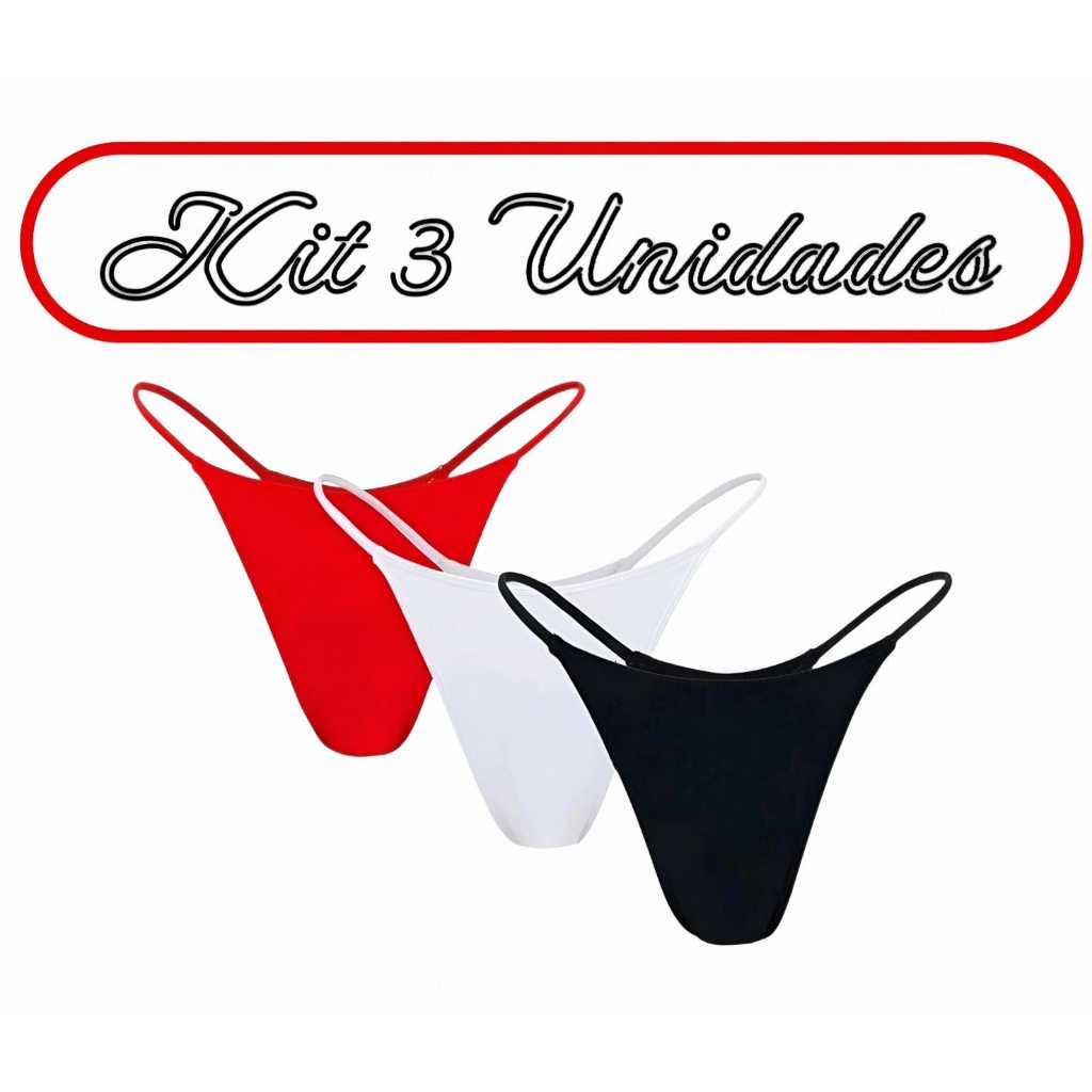 Kit 3 calcinhas 1445 femininas fio dental sensual mega promoção preta branca vermelha