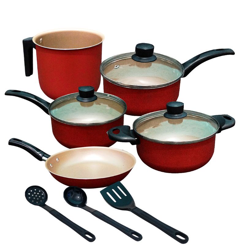 Jogo Panela Caçarola Conjunto Kit 9 Pçs Antiaderente Tampa Vidro Teflon