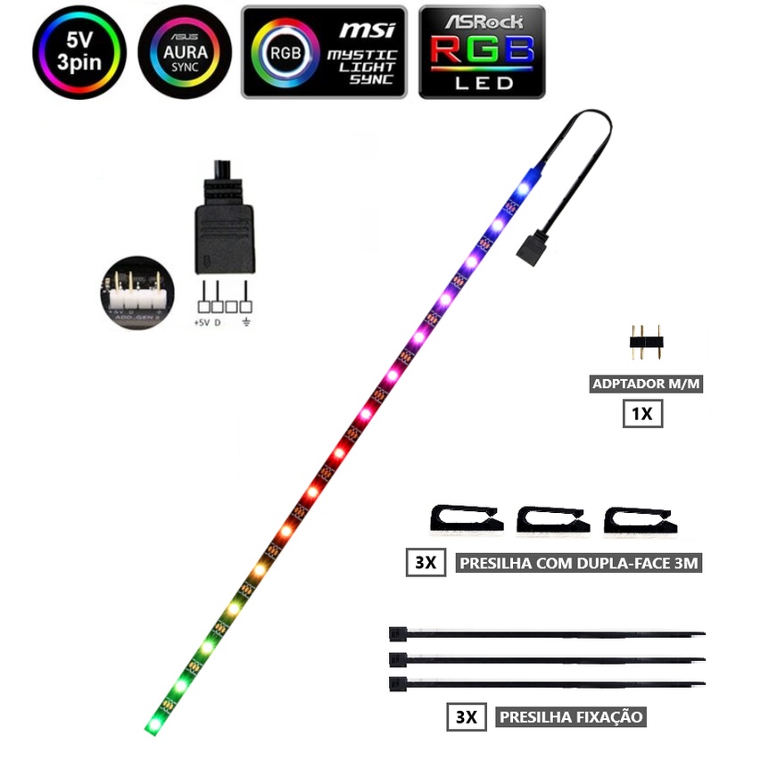 Fita de LED Endereçável ARGB 3 Pinos 5v 50cm Aura Sync - Para Gabinete PC Gamer