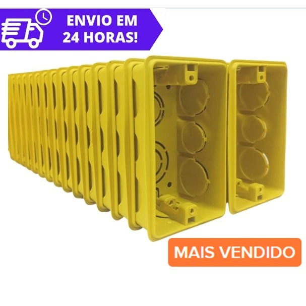 Kit 20 Caixinhas elétrica 4x2 Reforçadas p/ tomada/interruptor - AMARELA