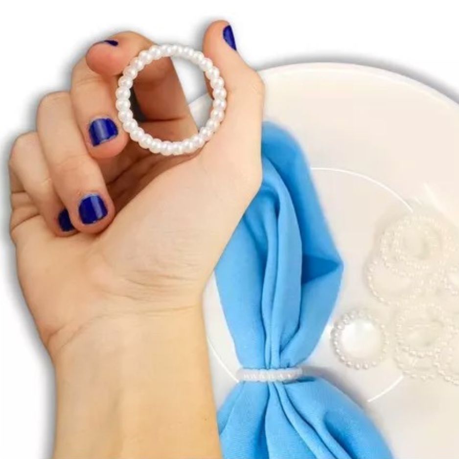 Porta Guardanapo Argola De Pérola Branca / Bege Natural - Diversos Tamanhos / C 50/100 Unidades - Fibra e Fio
