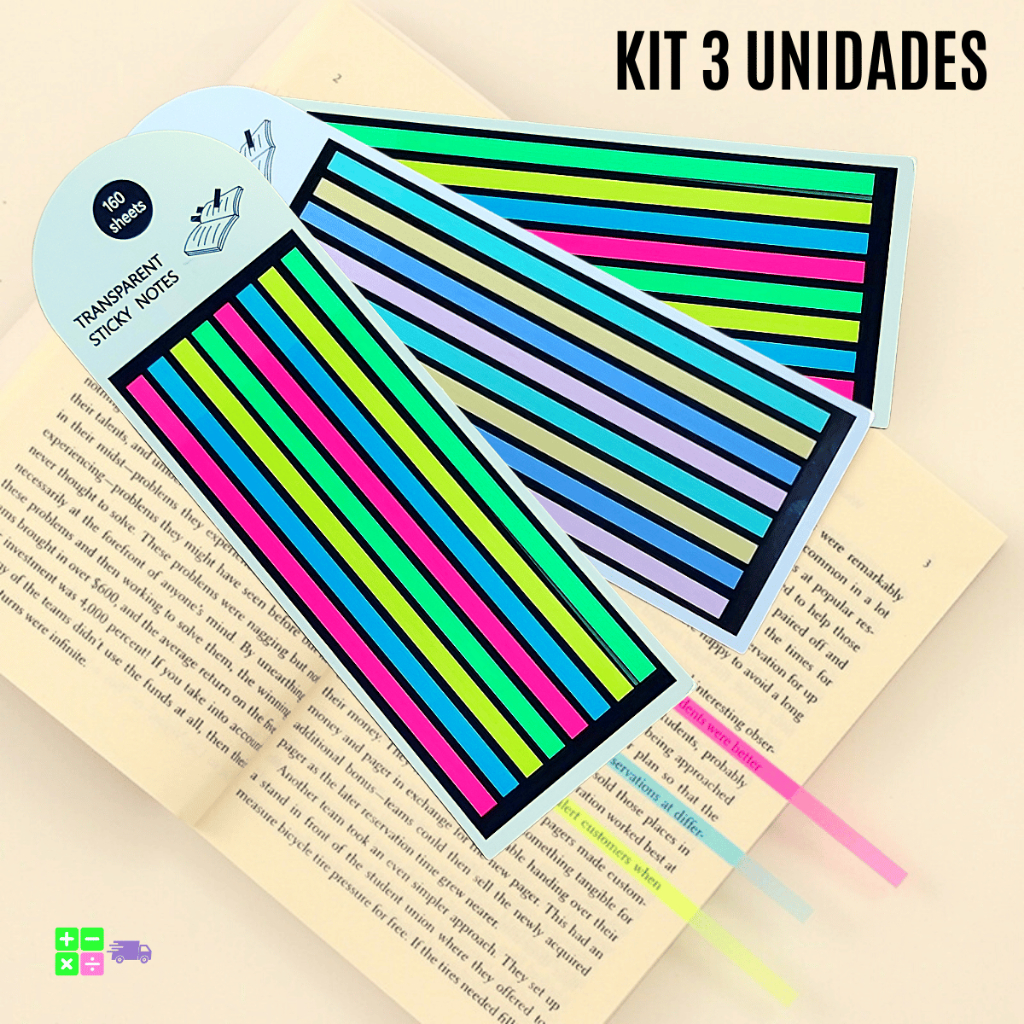 Kit 3 Blocos Notas Adesiva Transparente Para Marca Texto e Pagina com 480 Flags (fitinhas) I Livro I Bíblia I Caderno