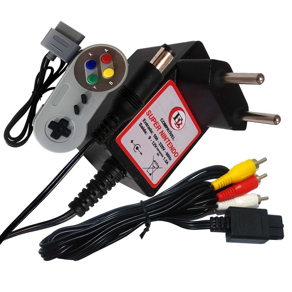 Fonte Controle e Cabo Para Super Nintendo Bivolt Automático