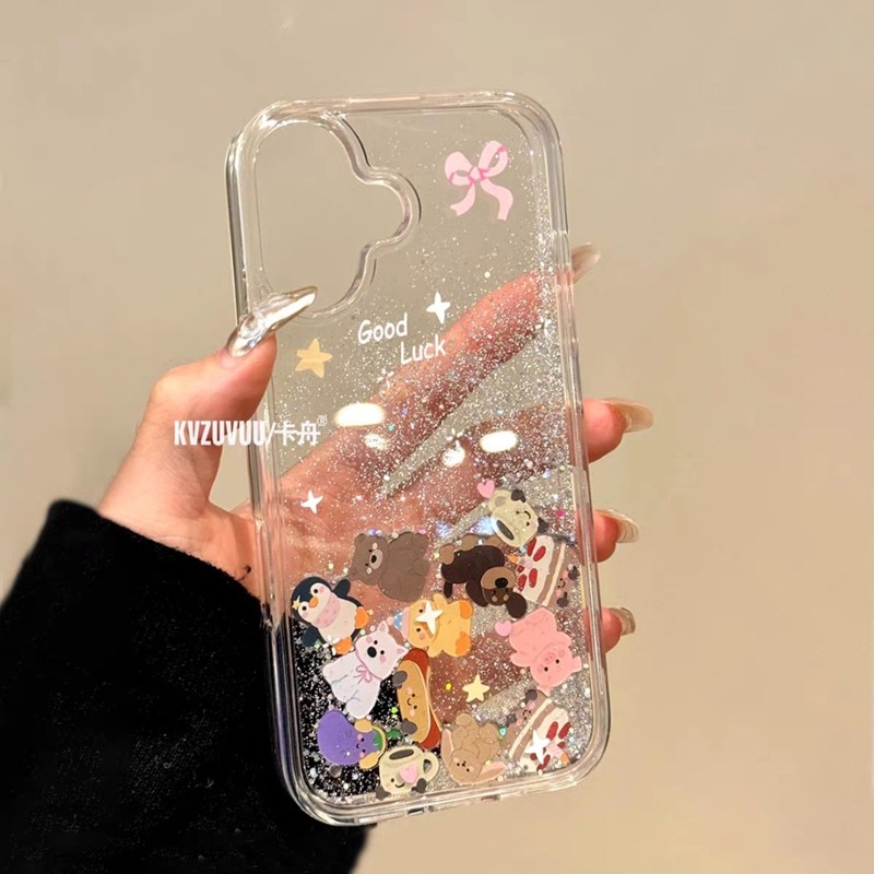 Capa De Areia Movediça Transparente Fofa De Desenho Animado Para iPhone 17 16 15 14 13 12 Pro Max