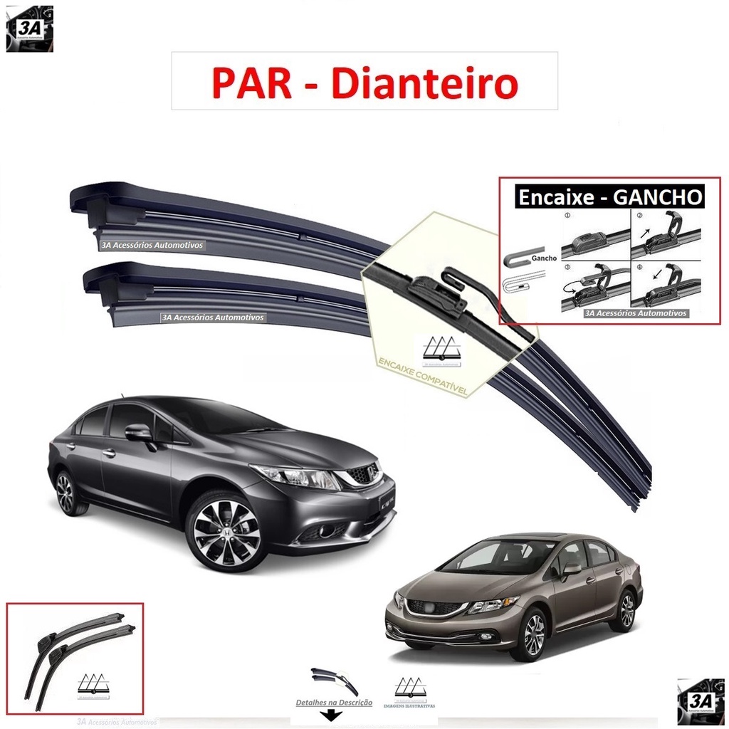 Limpador Parabrisa Honda Civic 2012 2013 2014 2015 2016 Par Palheta Jogo Dianteira Ano 12 13 14 15 16 Kit Borracha Silicone Vidro Automotivo Encaixe Gancho 3A-G2622