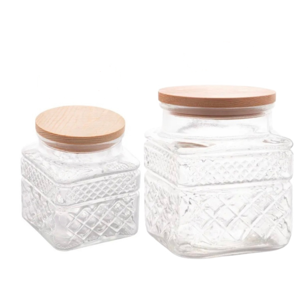 Kit Conjunto 2 Potes Herméticos em Vidro com Tampa em Bambu Porta Mantimentos 600ml e 1350ml