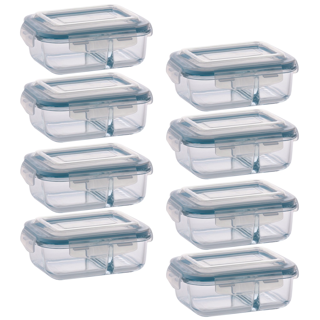Conjunto Com 8 Potes 640ml Divisória Hermético Marmita