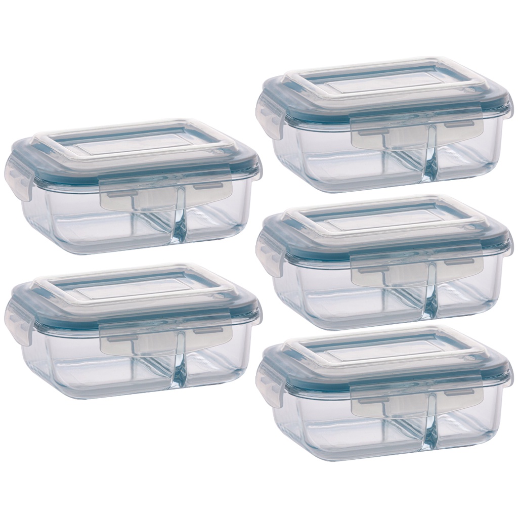 CONJUNTO KIT 5 POTES HERMÉTICOS MARMITA FITNESS BOROSSILICATO 640 ML DIVISÓRIA