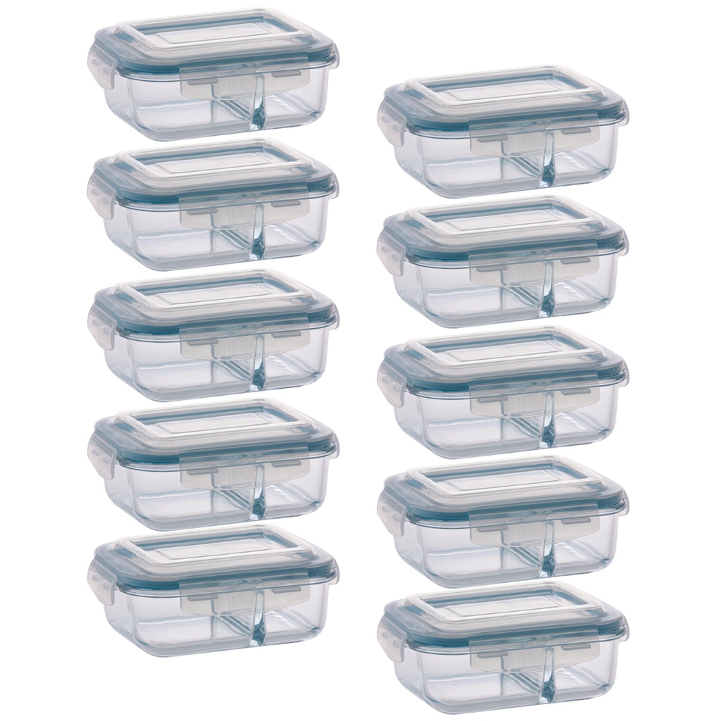 Conjunto Com 10 Potes 640ml Divisória Hermético Marmita