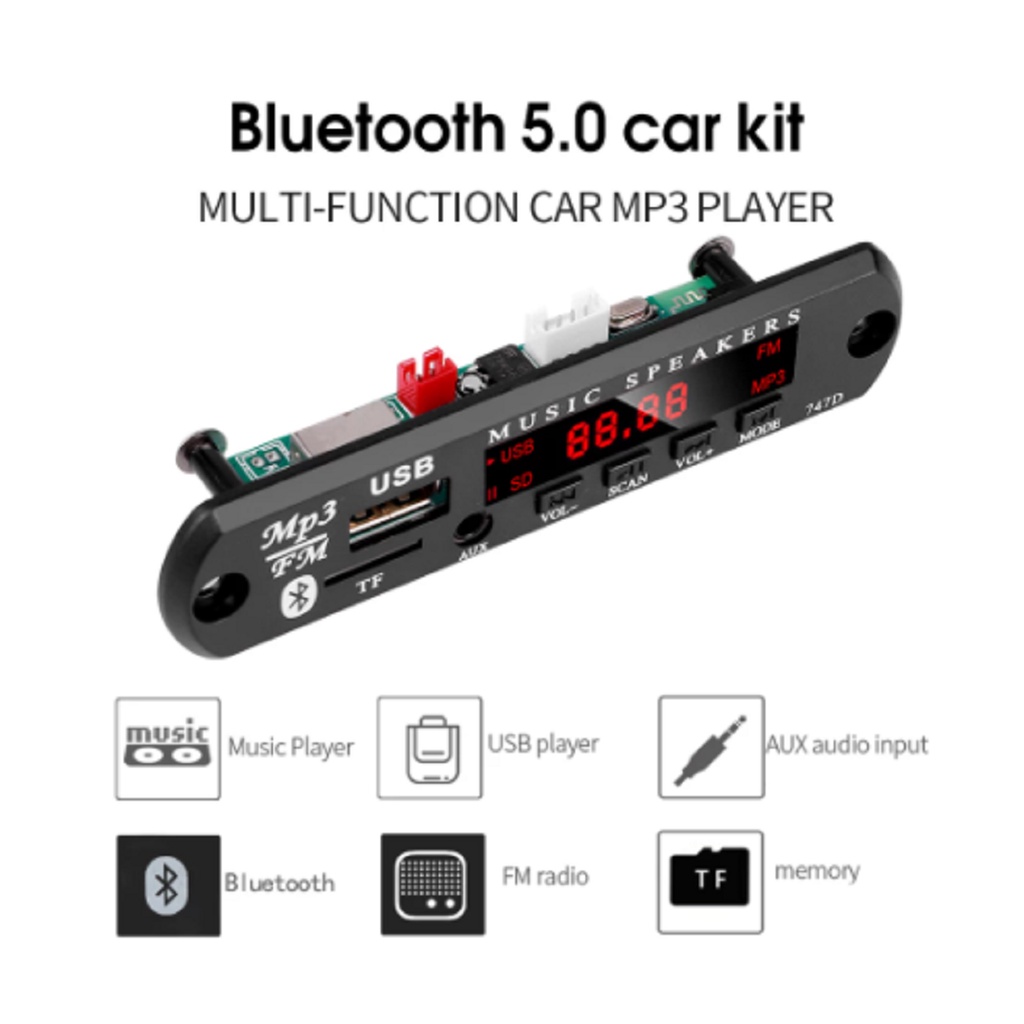 Placa Decodificador 9V 12V P/ Caixa Ativa Carro Som Automotivo Toca Mp3 Rádio Fm Aux Bluetooth Usb Cartão SD