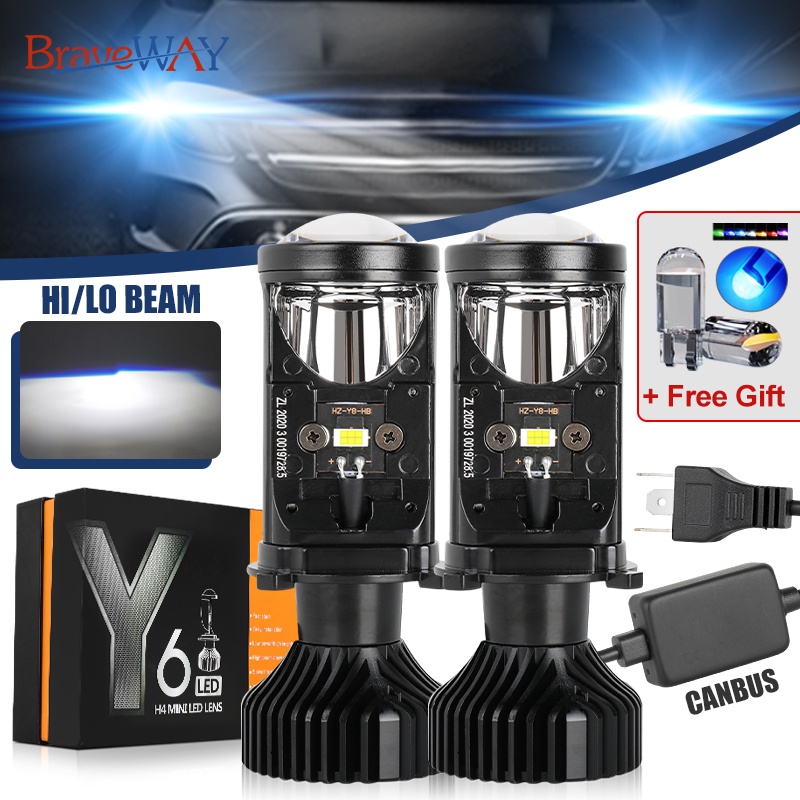 BraveWay 24000LM Canbus 90W/Lâmpada De Par H4 LED Mini Projetor Lentes Automobles Kit De Conversão De Lâmpadas Hi/Lo Farol Y6