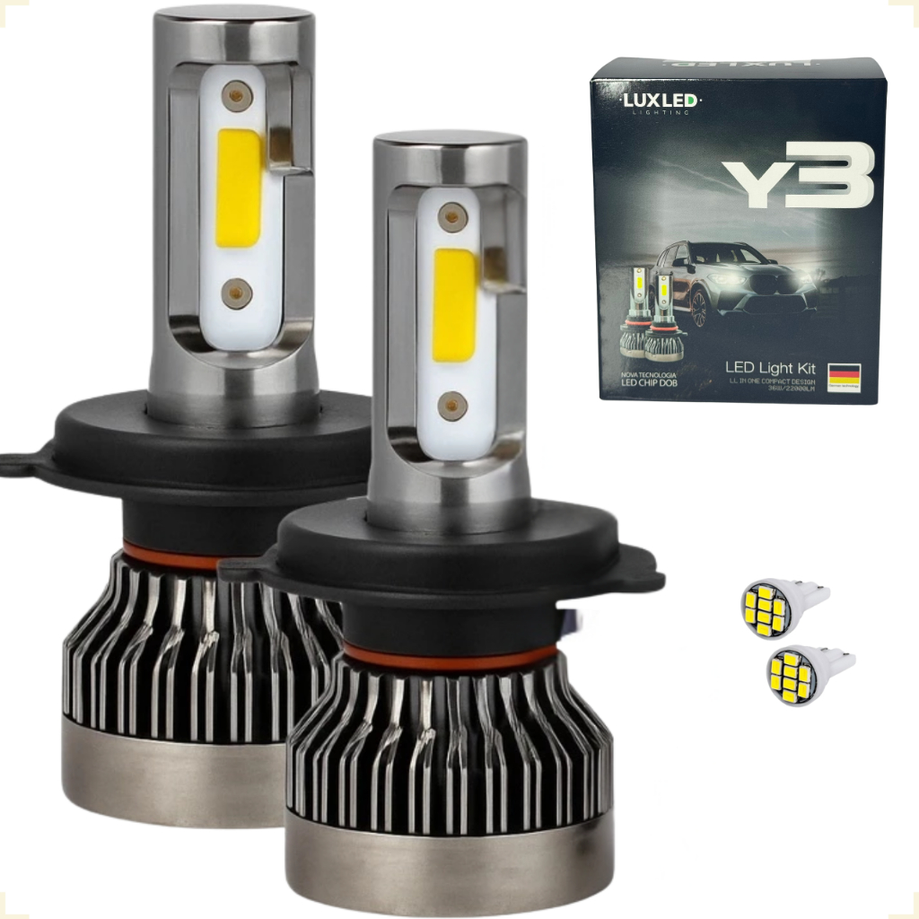 Kit de Lâmpadas Super Led Y3 22000 Lúmens + Pingo T10 Alto Baixo Milha H1 H4 H7 H11 H16 H27 HB3