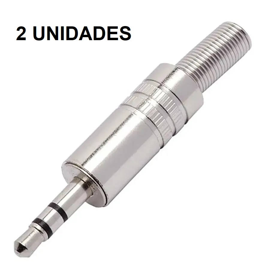 Plug P2 Stereo Metal C/ Mola Liso Profissional KIT COM 2 UNIDADES