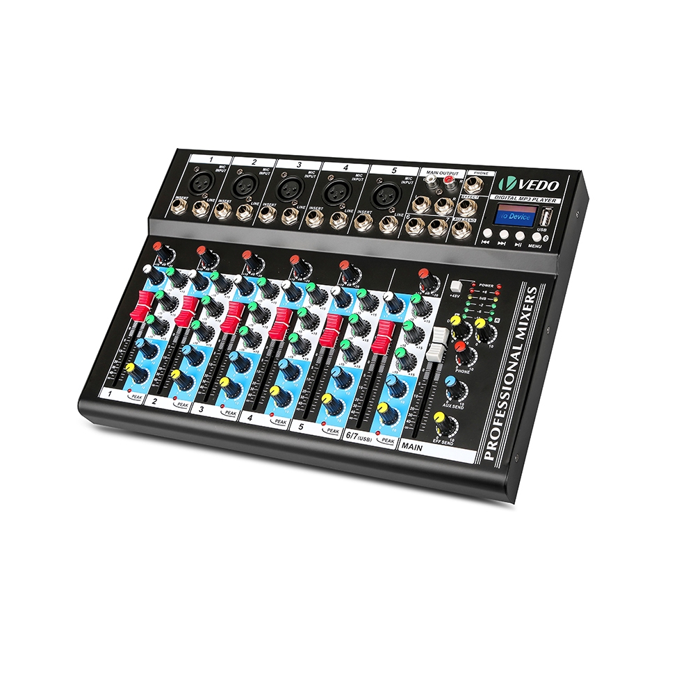 Vedo portátil mixing console 7 canais soundcard usb play record reprodução do computador mini misturador de áudio transmissão podcast vda107l