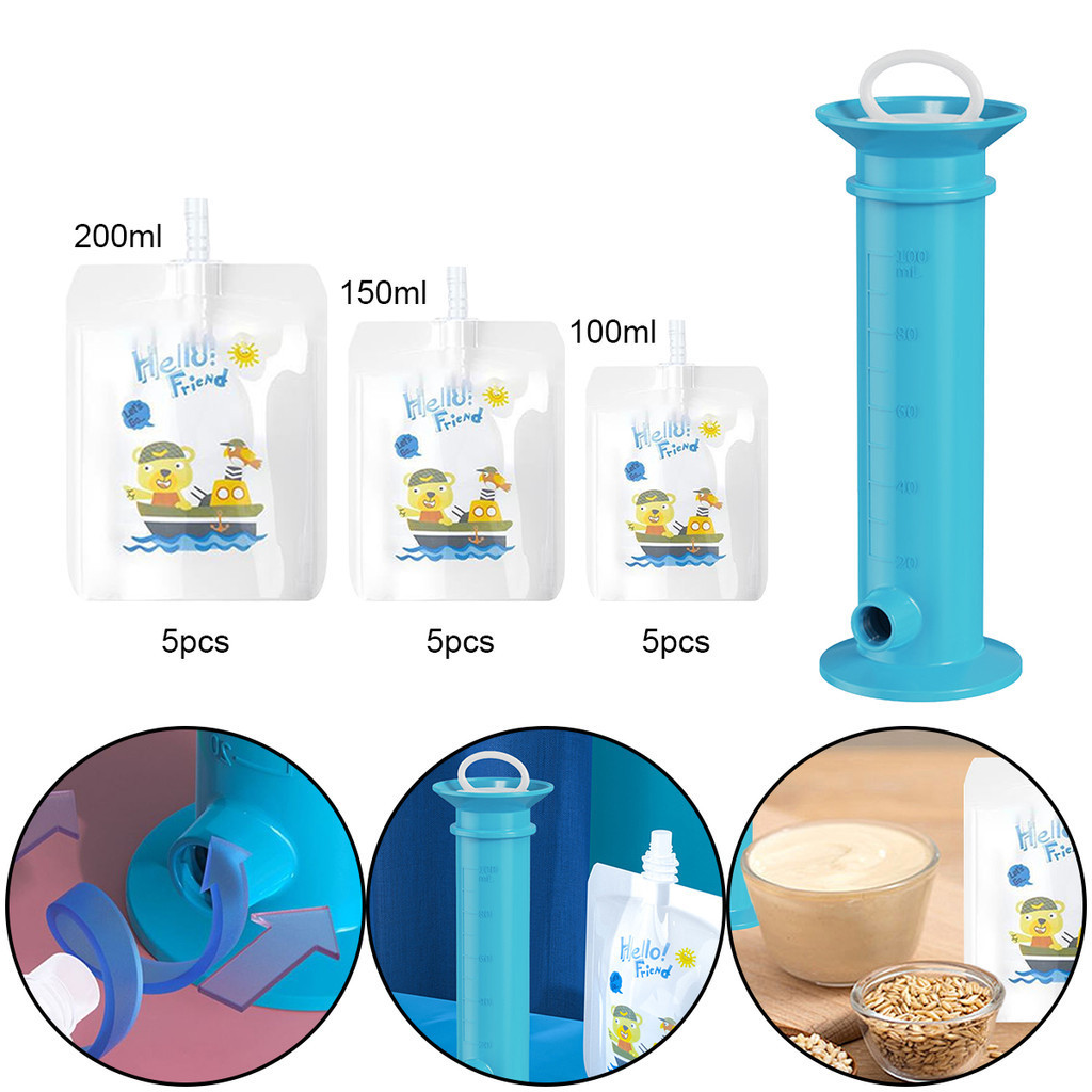 16 Pcs/Set Baby Food Pouch Maker Pure Color Pouches Toddler Squeeze Filler Para Crianças Fruit Máquina De Embalagem De Armazenamento Puree Pack Alimentador