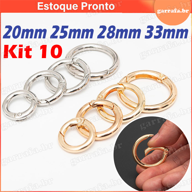 Kit 10 Argola Articulada Mosquetão 20mm 25mm 28mm 33mm / bolsa/ artesanato em geral / chaveiro/ coleira