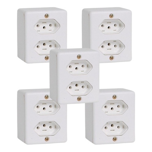 Kit 5x Tomada Dupla Caixa Sistema Sobrepor 10a Ilumi - 63120
