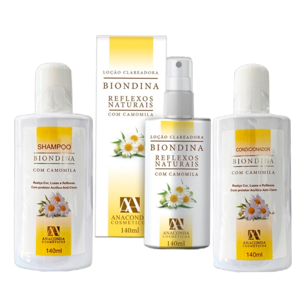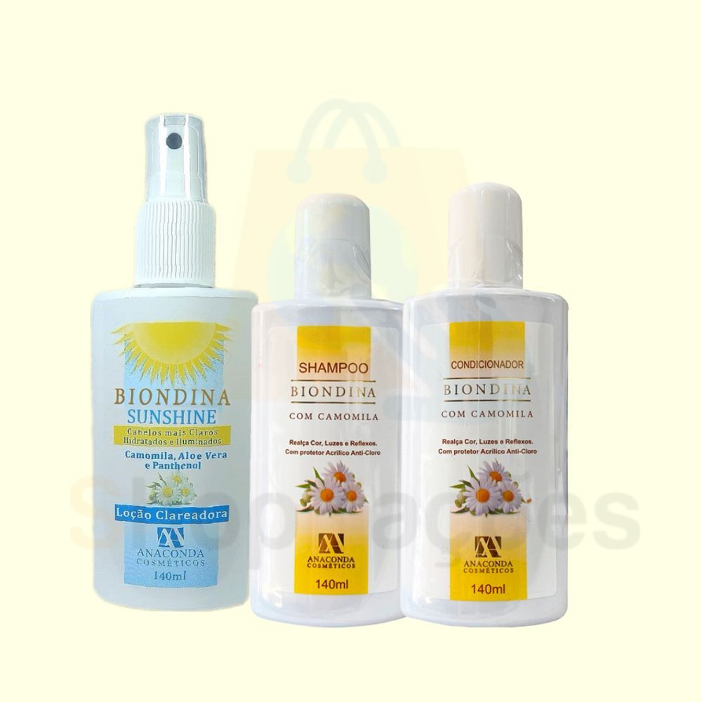 KIT Clareador Capilar Biondina Anaconda Loção Sunshine + Shampoo + Condicionador 140ml