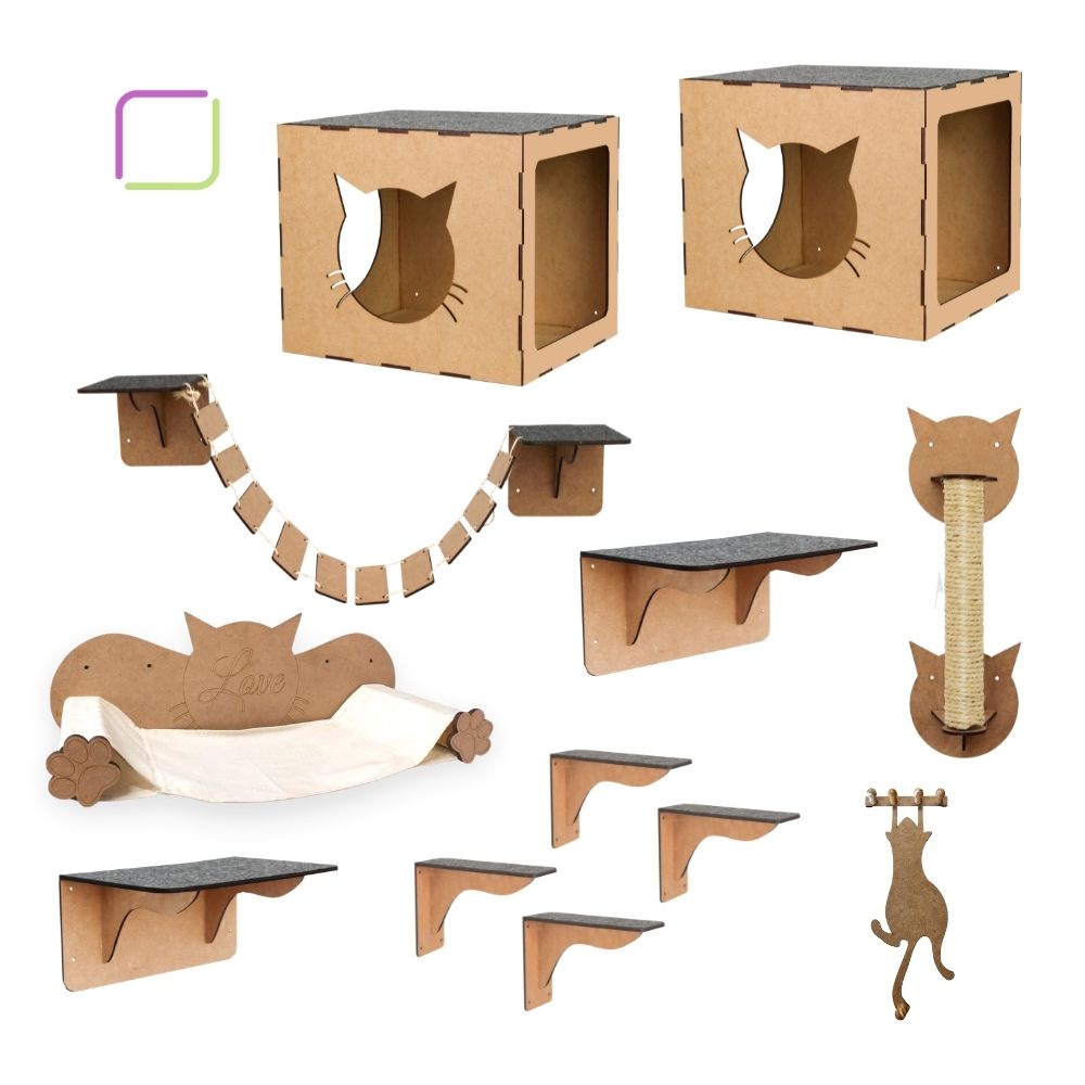 Melhores Playground Gatos com Nicho Brinquedo de Gato prateleiras de parede em mdf Rede Kit 8 peças