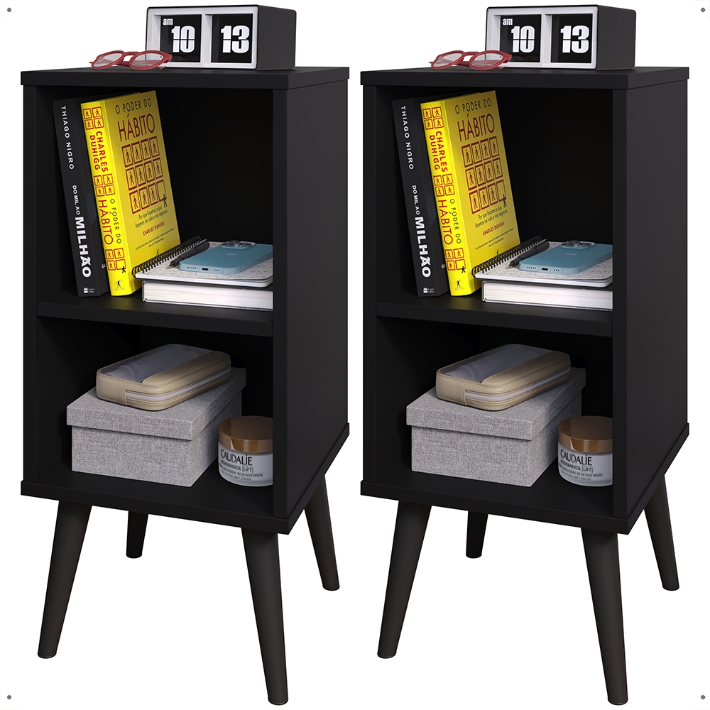 Kit 2 Mesas de Cabeceira Criado Mudo com estilo Retrô Vintage para Quarto apoio para Cama PRETO