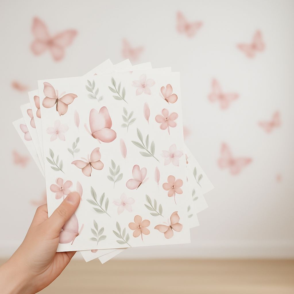 Adesivo de Parede Borboletas e Flores Decoração Delicada para Quarto Infantil Feminino