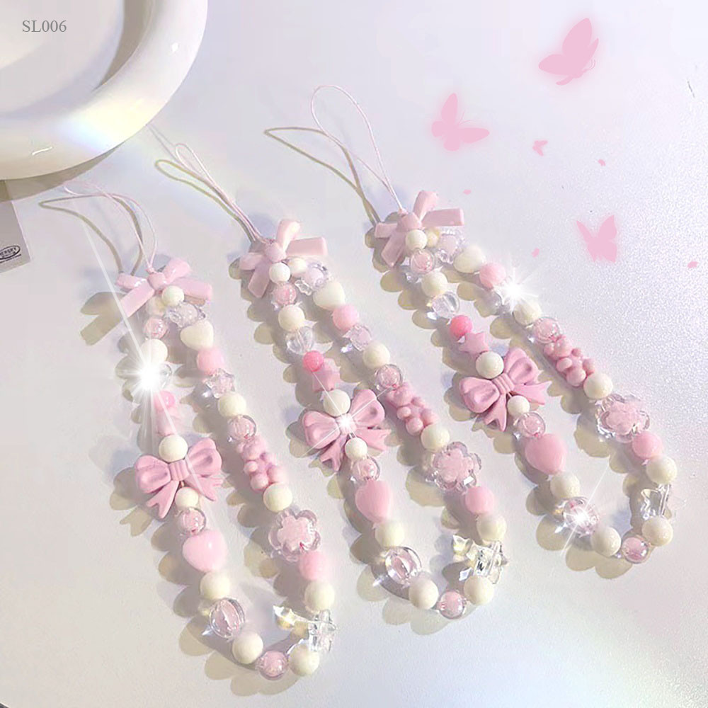 Cordão Para Celular De Corrente Feminino Com Pink Bow E Miçangas 006SL