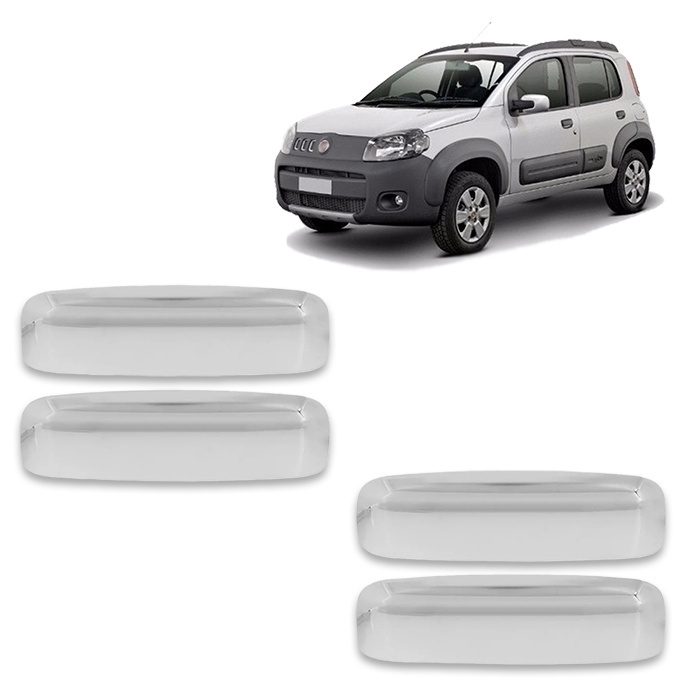 Jogo Aplique Cromado para Maçaneta Externa Uno Evo 2010 2011 2012 2013 2014 2015 2016 2017 2018 Sem Furo