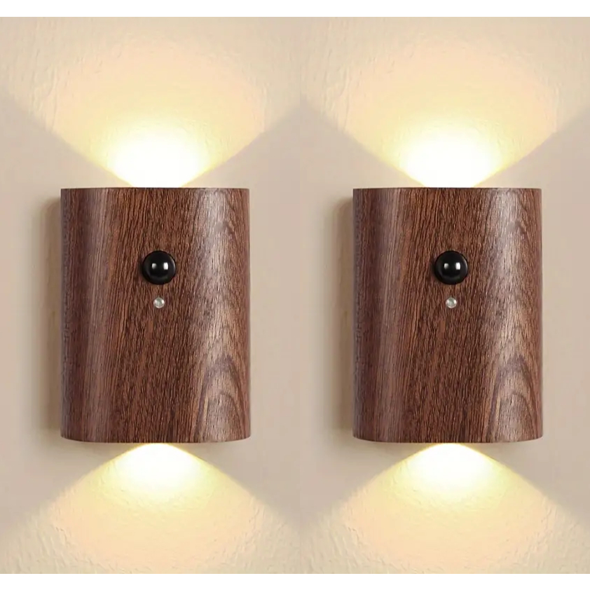 Luz De Parede Com sensor De Movimento LED , De Madeira , Noturna Recarregável USB , Lâmpada Magnética Cabeceira Armário Entrada