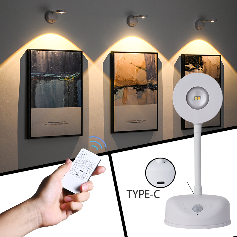 Três Cores Em Um Só Corpo sensor Luz De Parede Inteligente Sem Fio Holofotes USB Recarregável Multi-Funções Com Controle Remoto Por Toque Decoração Noturna LED