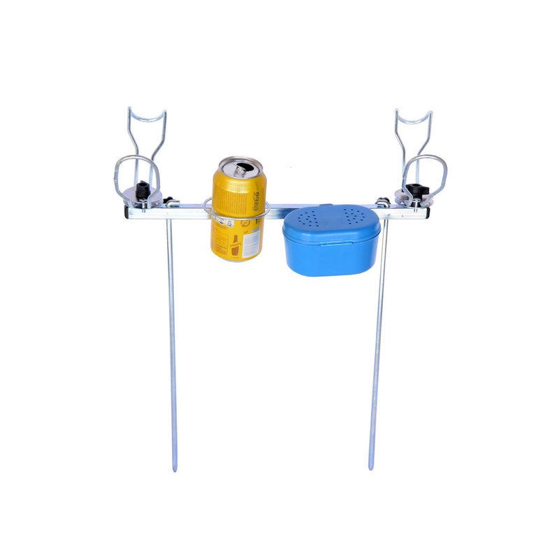 Suporte De Chão Para Varas De Pesca Desmontável 02 Varas Com Porta Lata