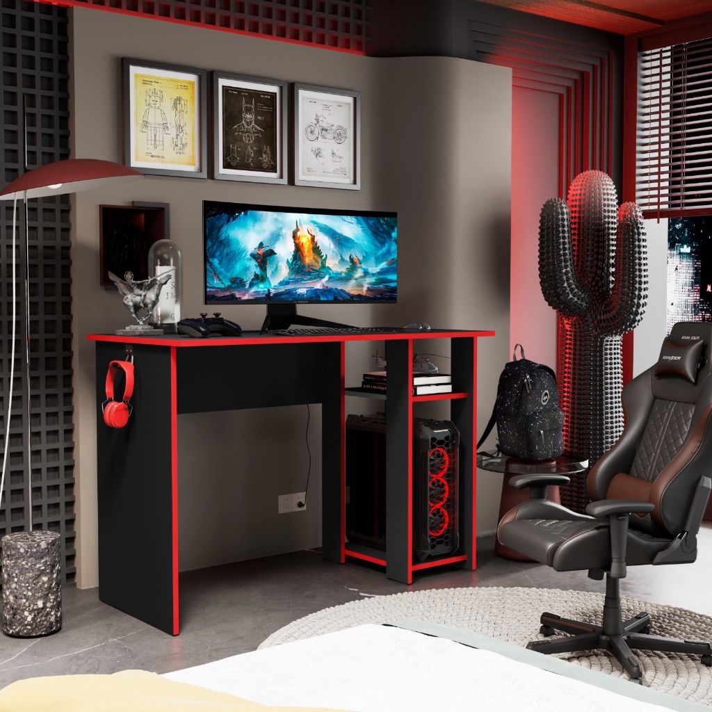Escrivaninha Mesa Gamer Rofemar Mazon Com Espaço Computador Pc E Gabinete Para Escritório E Quarto De Estudos Vermelho