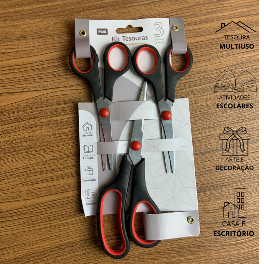Kit 3 Tesouras Aço Inox Corte Costura Profissional Artesanato E Domestico-Multiuso Ótima Qualidade.