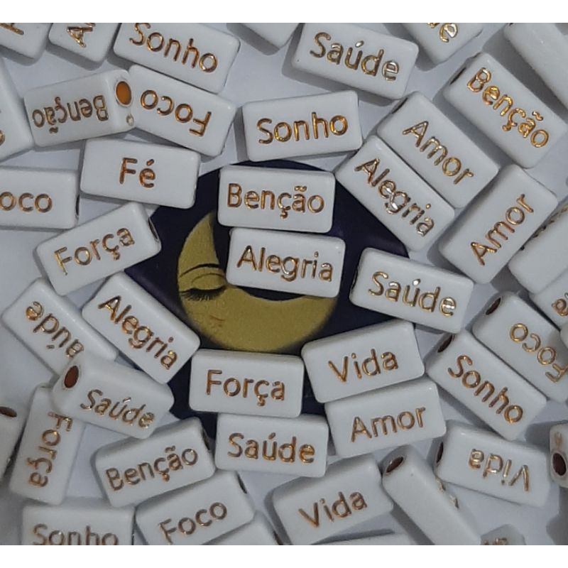 Entremeio Retangular branca com palavras positivas em português em dourado - 15 unidades
