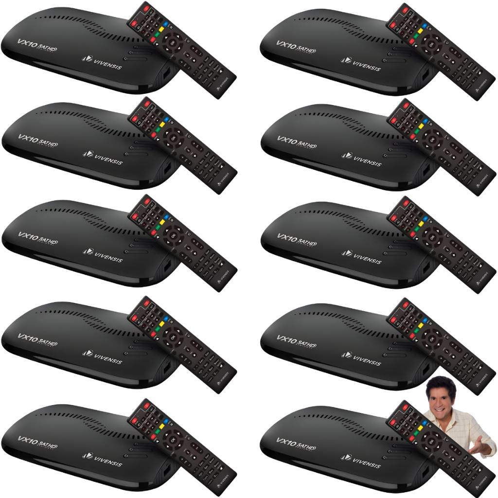KIt 3,5 ou 10 Receptores Digital TV, Full HD Smart Multimidia via Satélite Bivolt Vivensis VX10 - Ideal para pousadas, restaurantes, hotéis e para sua casa