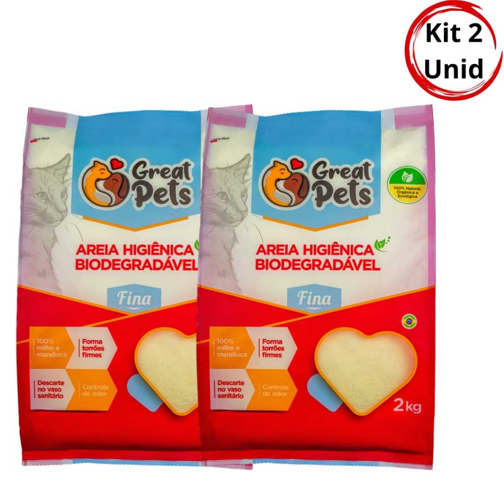Kit 2un. Areia Sanitária Para Gatos Pet Biodegradável Mandioca e Milho Anti Odor Fina ou Grossa Great Pets 2kg