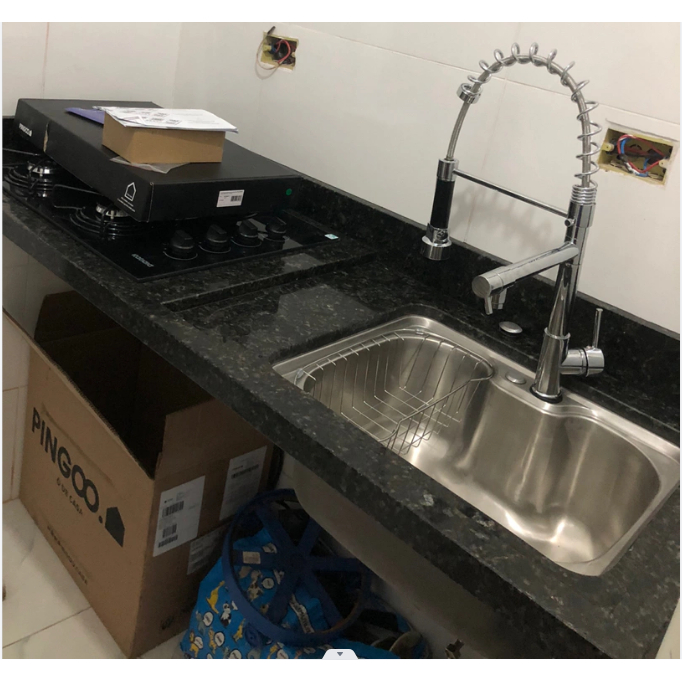 Cuba para cozinha gourmet pia aço inox com acessórios Nawa 50 cm e Torneira gourmet Munim pingoo.casa