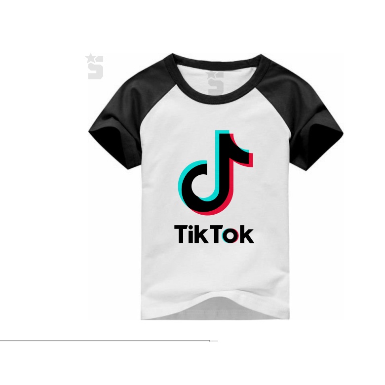 Camisa Camiseta Tik Tok app raglan mangas preta personalizada Infantil