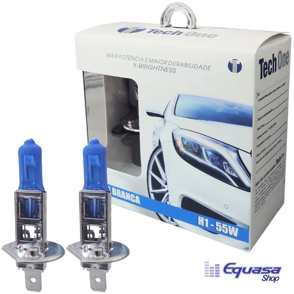 Par Lâmpada Super Branca H1 Efeito Xenon Tech One 8500K 55W 12V P14.5s