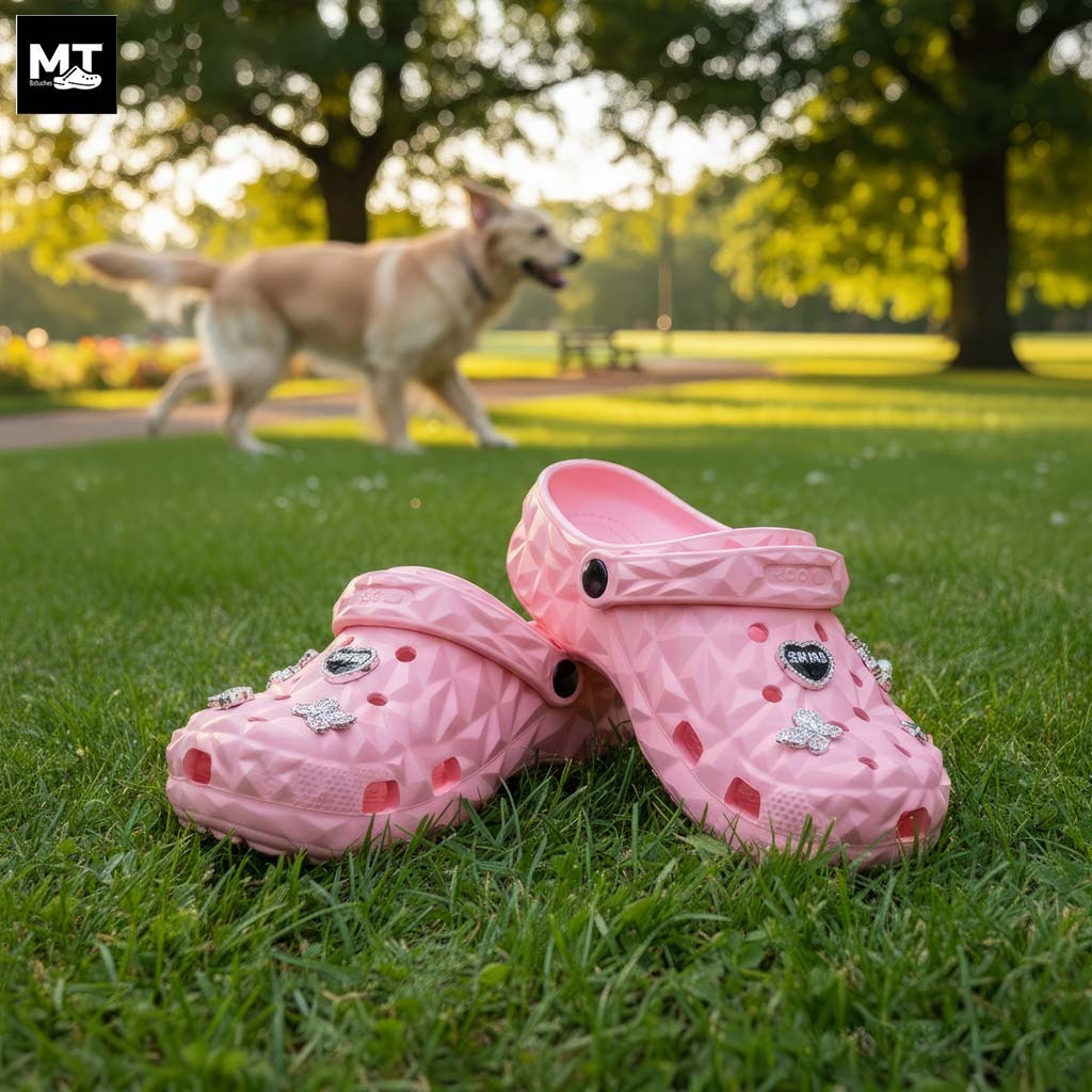 Babuche feminina EVA confortável e leve com enfeites aleatórios – sandália furadinha moderna