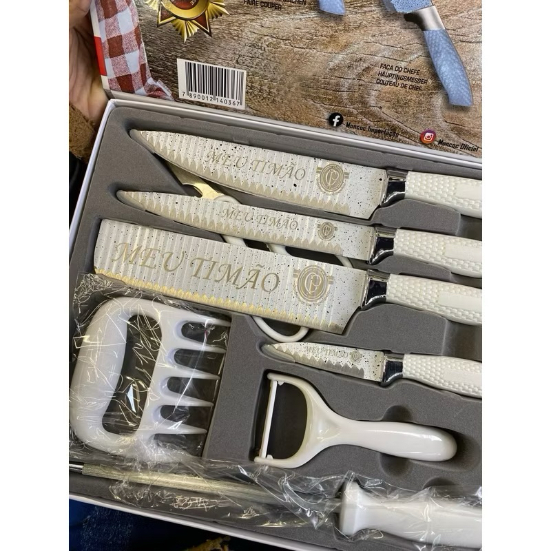 Kit Faca em Inox Profissional Kit Churrasco Anti Aderente Corte Fio de Navalha Conjuhto de 08 Peças personalizado