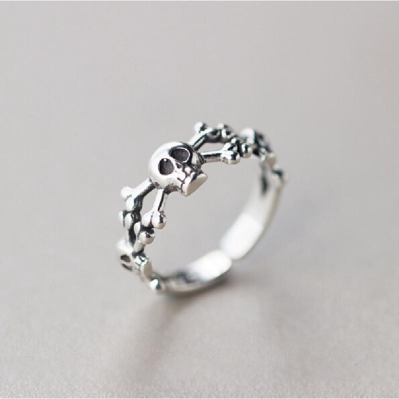 Crânio Steampunk com anel aberto em prata esterlina 925, estilo masculino e feminino, joia hipoalergênica de prata esterlina 925, 1 peça de joia hipoalergênica de prata esterlina para homens e mulheres
